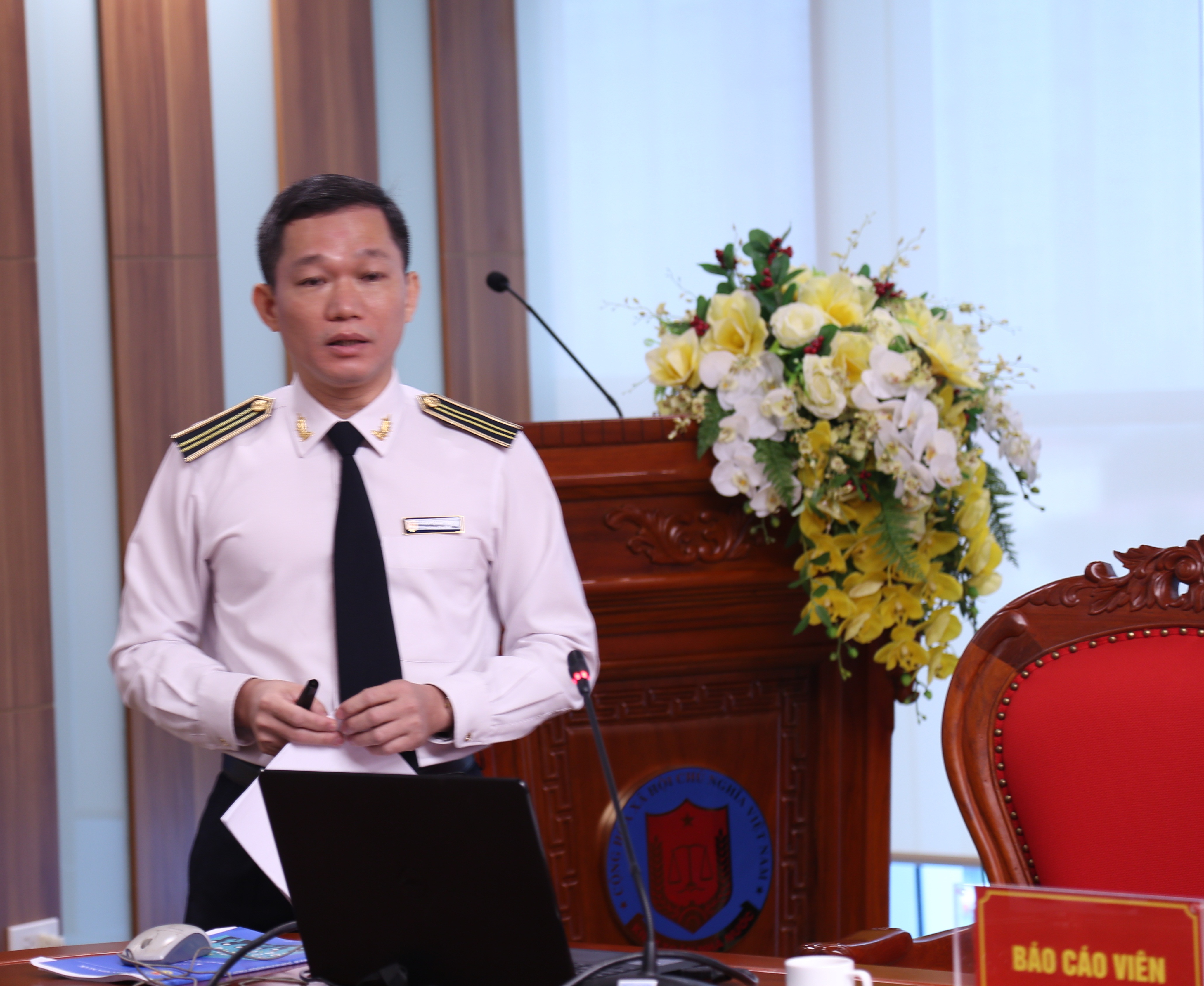 Phó Vụ trưởng Vụ HTQT Nguyễn Việt Hùng trình bày báo cáo tổng hợp.