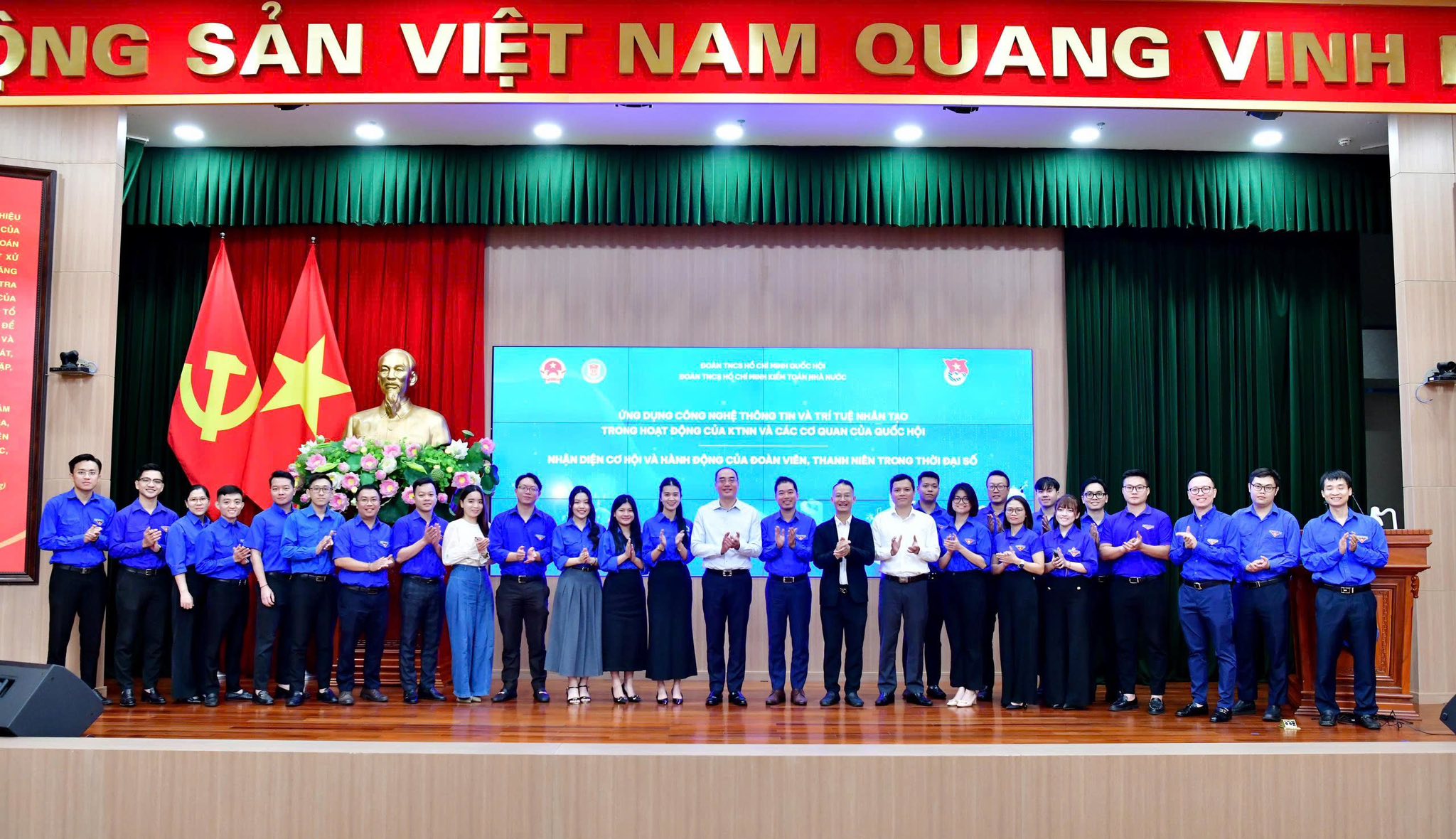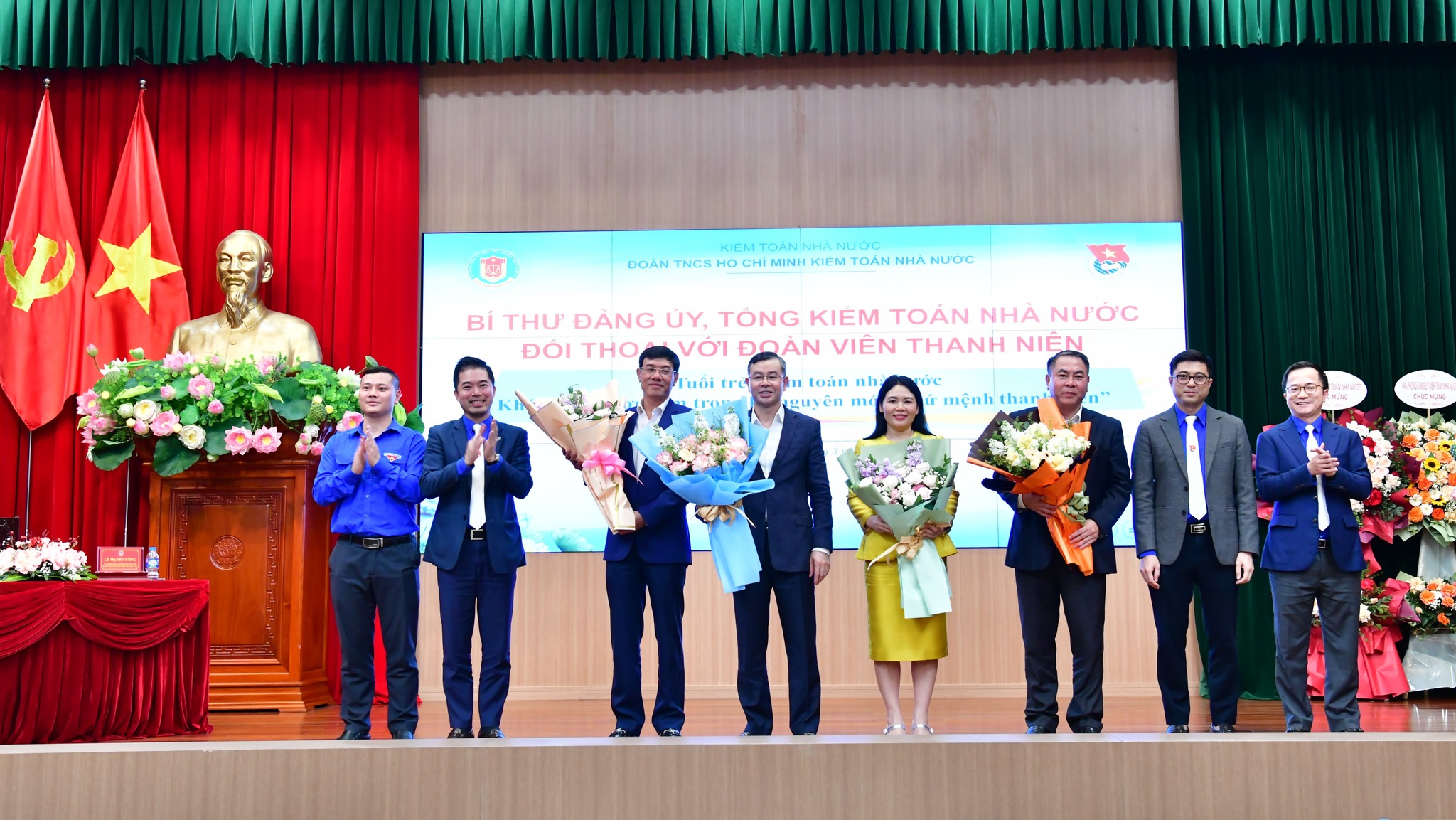 | Nhiệm kỳ 2022-2027 - bước phát triển mạnh mẽ của Đoàn Thanh niên Kiểm toán nhà nước Nhiệm kỳ 2022-2027 đánh dấu bước phát triển mạnh mẽ của Đoàn Thanh niên Kiểm toán nhà nước với nhiều kết quả toàn diện, nổi bật trên các mặt công tác. Trong bối cảnh cơ cấu tổ chức Ngành thay đổi, chuyển từ trực thuộc Đoàn Khối các cơ quan Trung ương sang trực thuộc Đoàn Thanh niên Quốc hội, tổ chức Đoàn Kiểm toán nhà nước đã nhanh chóng thích ứng, chủ động đổi mới phương thức hoạt động, giữ vững vai trò hạt nhân đoàn kết và lực lượng xung kích của tuổi trẻ. Những thành tựu đã đạt được không chỉ góp phần nâng cao vị thế của Đoàn trong nội bộ Ngành, mà còn lan tỏa hình ảnh đẹp về tuổi trẻ cơ quan Kiểm toán nhà nước. Công tác giáo dục chính trị tư tưởng được xem là điểm sáng lớn của nhiệm kỳ. 100% cán bộ, đoàn viên, thanh niên được học tập đầy đủ các nghị quyết của Đảng, của Đoàn, các quy định pháp luật và định hướng tư tưởng chính trị. Hàng loạt hình thức tuyên truyền linh hoạt, đa nền tảng, từ tọa đàm, sinh hoạt chuyên đề đến hành trình về nguồn đã giúp việc học tập lý luận và tư tưởng Hồ Chí Minh trở nên sinh động, thiết thực. Tọa đàm về “Tư tưởng, phong cách lãnh đạo của Nguyễn Ái Quốc - Hồ Chí Minh” nhân 133 năm Ngày sinh của Bác, do Đoàn Kiểm toán nhà nước chủ trì, đã thu hút sự quan tâm rộng rãi, thể hiện vai trò dẫn dắt của tổ chức Đoàn trong giáo dục đạo đức công vụ cho thế hệ trẻ ngành kiểm toán. Song song với giáo dục lý luận, Đoàn Kiểm toán nhà nước đặc biệt chú trọng xây dựng bản lĩnh chính trị, đạo đức, lối sống và văn hóa ứng xử nghề nghiệp cho đoàn viên. Các cuộc vận động “Mỗi ngày một tin tốt”, “Ứng xử văn minh trên không gian mạng” được triển khai rộng rãi, qua đó góp phần xây dựng hình ảnh người kiểm toán viên trẻ “Công minh - Chính trực - Nghệ tinh - Tâm sáng”. |
