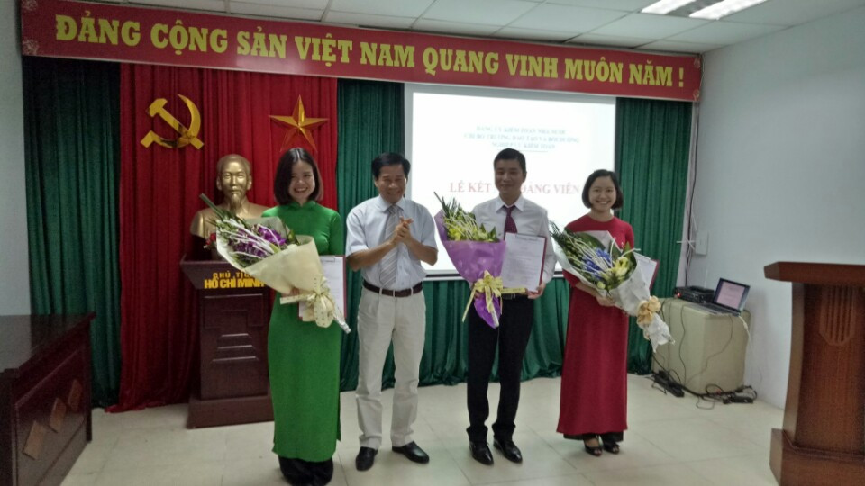 (khoahockiemtoan.vn) - Hướng tới kỷ niệm 127 năm ngày sinh Chủ tịch Hồ Chí Minh vĩ đại (19/5/1890 - 19/5/2017), ngày 19/5/2017, Chi bộ Trường Đào tạo và Bồi dưỡng nghiệp vụ kiểm toán (Trường) đã tổ chức Lễ kết nạp Đảng viên cho 03 đoàn viên ưu tú: Trần Văn Thắng, Lê Na và Đoàn Lê Nga.