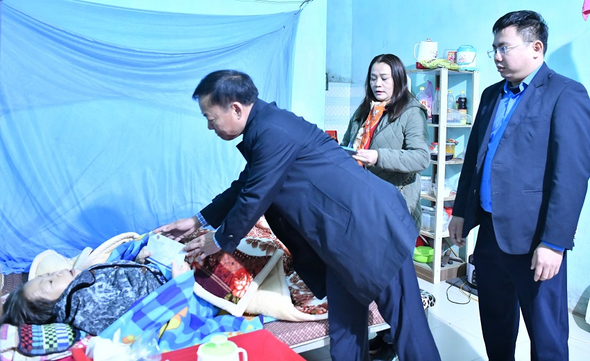 Đến thăm hỏi, động viên bệnh nhân mắc bệnh thận có hoàn cảnh khó khăn đang sinh sống tại “Xóm chạy thận” xã Nghi Phú, thành phố Vinh, tỉnh Nghệ An, ông Trần Kim Lộc chúc các bệnh nhân đón Tết an lành và luôn lạc quan để chiến thắng bệnh tật.