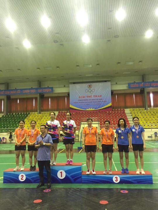 Ban Tổ chức trao giải cầu lông cho các vận động viên tham dự