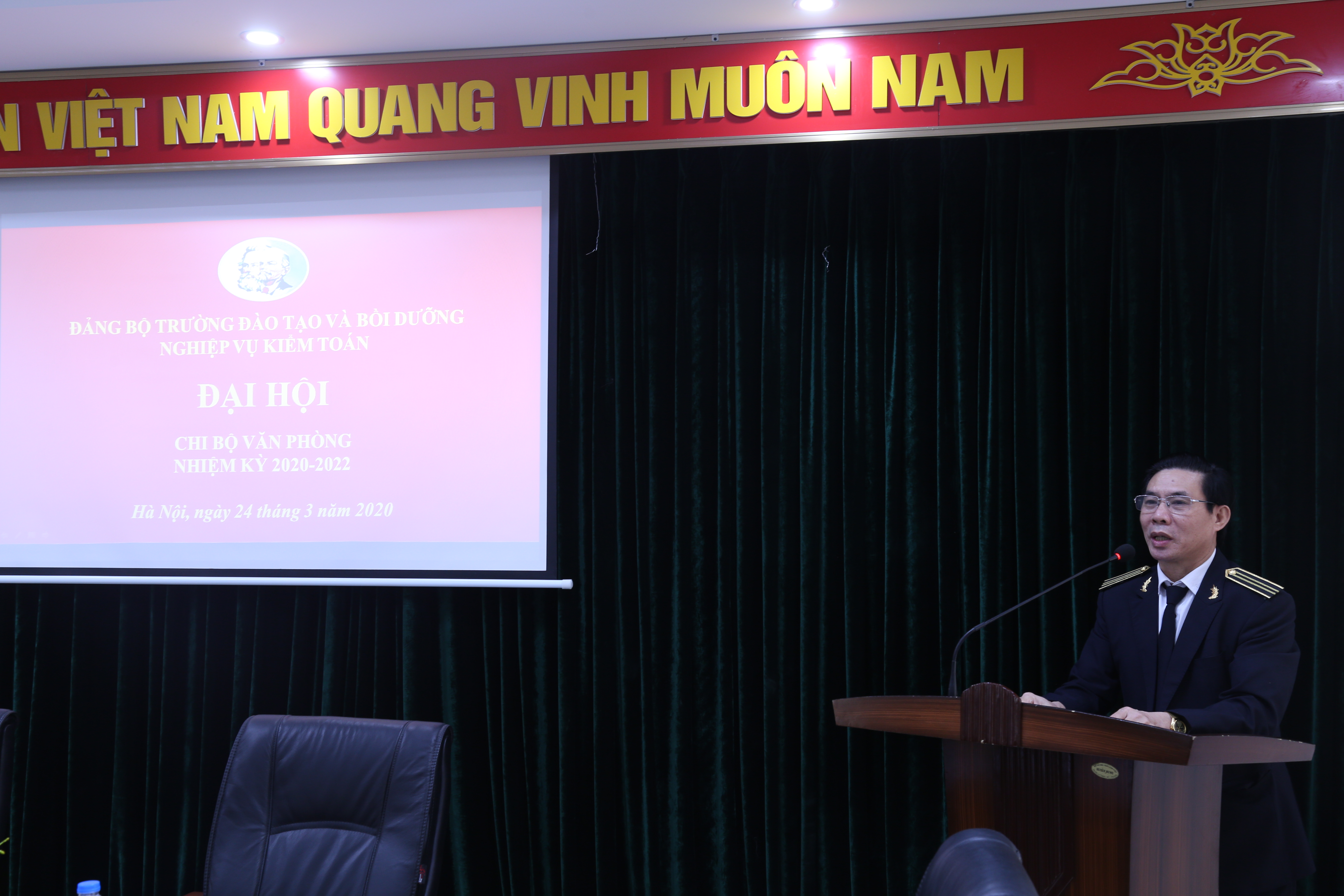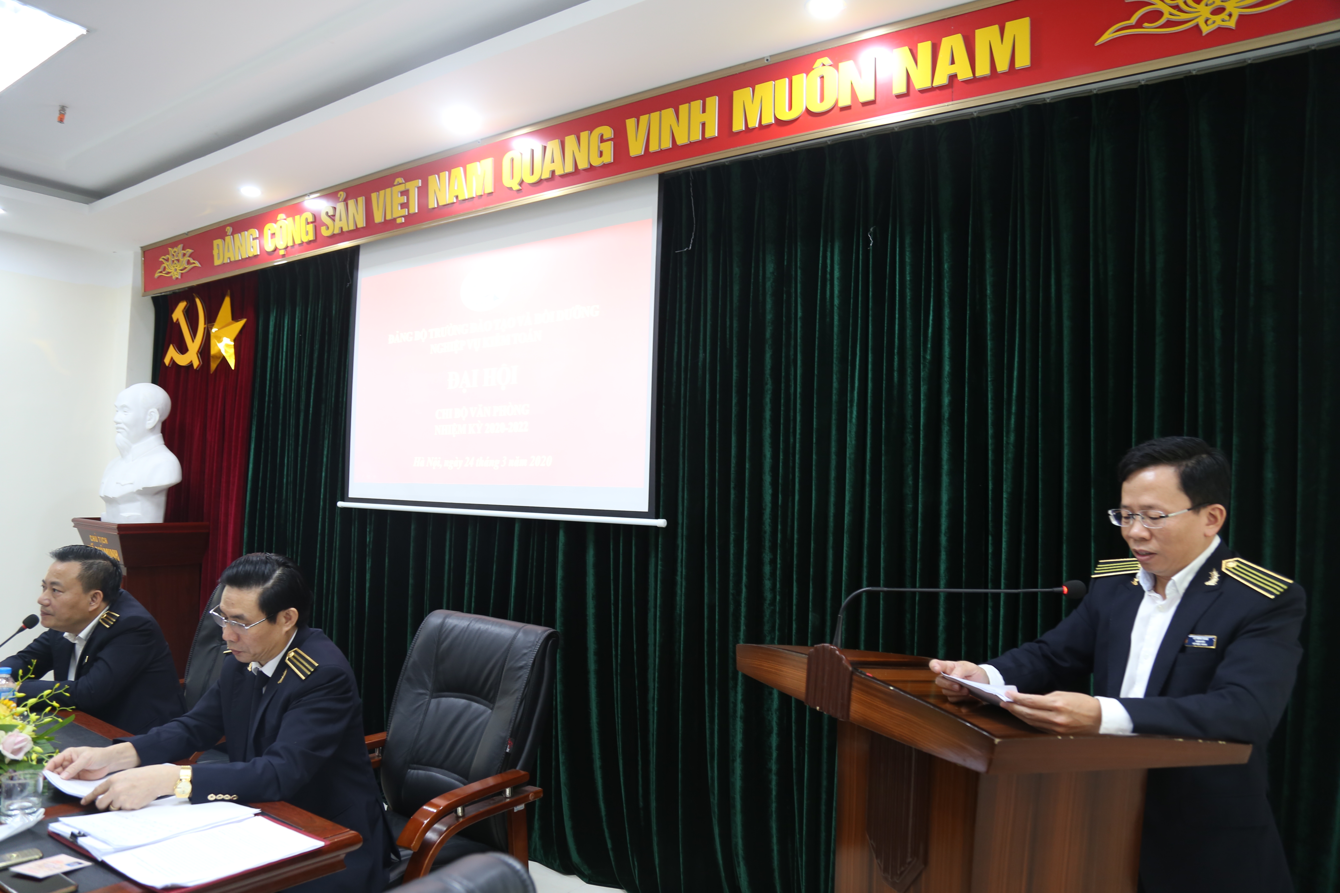 Chi ủy nhiệm kỳ 2020-2022 ra mắt Đại hội. Đại hội đã thông qua Nghị quyết và chỉ tiêu của Chi bộ nhiệm kỳ 2020-2022 và được 100% đang viên trong chi bộ tán thành thông qua. Trong đó,100% đảng viên tham gia học tập, quán triệt Nghị quyết Đại hội XIII của Đảng; các chỉ thị, Nghị quyết của BCH TW Đảng khóa XIII; Nghị quyết của Đảng bộ Khối CQ TW; Nghị quyết Đại hội lần thứ VII của Đảng bộ KTNN; Nghị quyết đại hội Đảng bộ Trường khóa VI; 100% cán bộ đảng viên tham gia thực hiện nghiêm túc Chỉ thị 05 về đẩy mạnh học tập và làm theo tư tưởng, đạo đức, phong cách Hồ Chí Minh; Hàng năm Chi bộ đạt danh hiệu “Chi bộ hoàn thành tốt nhiệm vụ và trong sạch vững mạnh’’; 100% đảng viên hoàn thành nhiệm vụ trong đó trên 90% đảng viên đủ tư cách và hoàn thành tốt nhiệm vụ và có 20-25 % đảng viên hoàn thành xuất sắc nhiệm vụ; Trong nhiệm kỳ kết nạp mới được từ 02 đảng viên trở lên; Đề xuất Đảng ủy cử đi học chương trình cao cấp lý luận cho 01 đ/c đảng viên và Trung cấp lý luận chính trị cho 2-3 đ/c đảng viên.