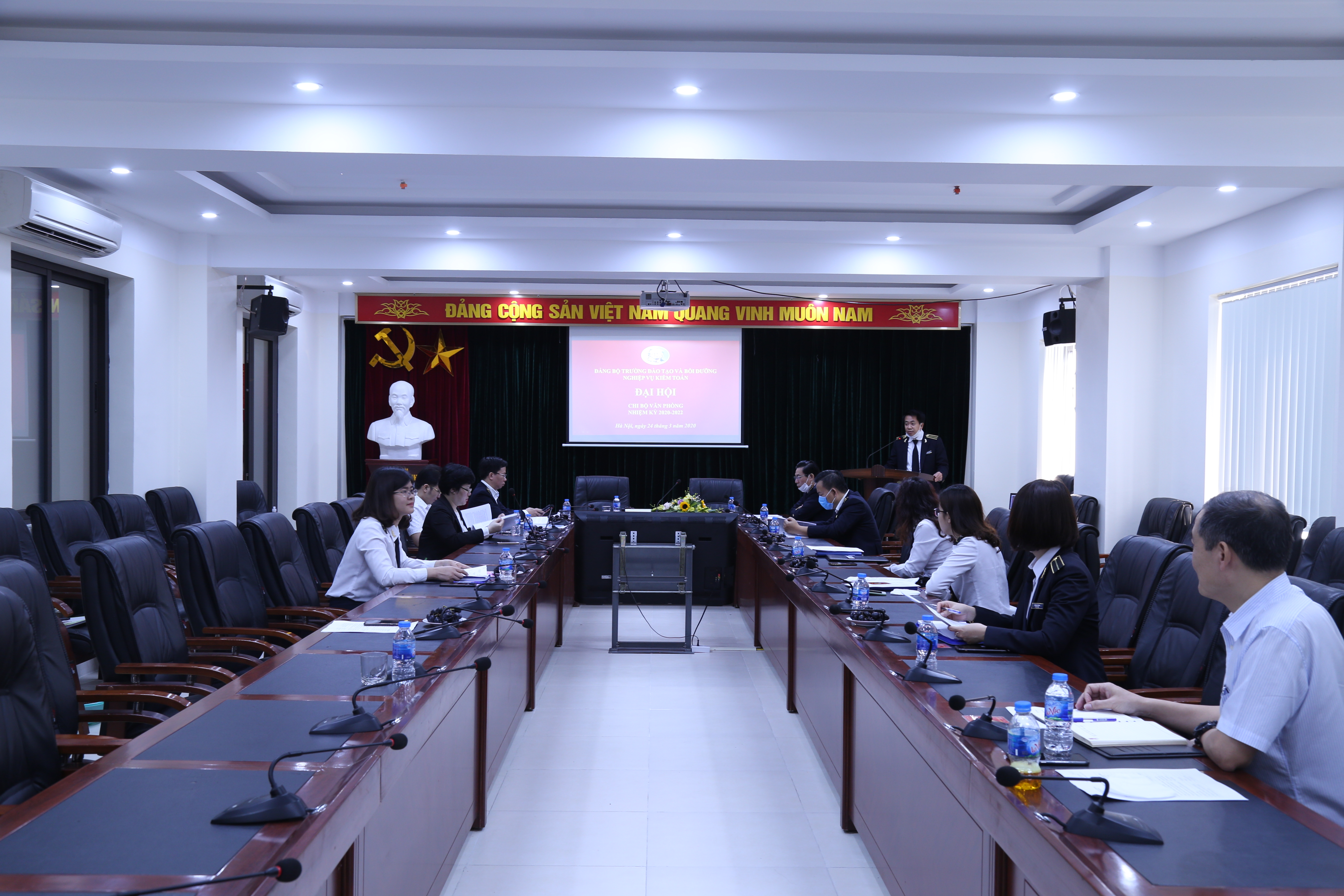 (khoahockiemtoan.vn) - Ngày 24/3/2020, Chi bộ Văn phòng Trường ĐT&BD nghiệp vụ kiểm toán (Trường) tổ chức Đại hội nhiệm kỳ 2020-2022, đến dự Đại hội có ông Lê Minh Nam - Bí thư Đảng ủy, Giám đốc Trường; ông Nguyễn Huy Hoàng, ông Ngô Văn Dũng Phó Giám đốc Trường và toàn thể Đảng viên Chi bộ Văn phòng Trường.