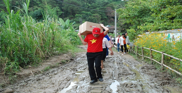 Đường lên Pá Chả không đi được ô tô, chỉ có thể đi bằng xe máy vì đường hẹp, mặt đường thì xấu. Gặp dịp nắng ráo nên còn lên bản được, chứ nếu trời mưa thì Pá Chả có thể bị cô lập hoàn toàn. Chúng tôi phải nhờ đơn vị bộ đội ở xã chuyển trước chăn, nồi và các vật dụng khác lên trước. Đó là những vật dụng thiết yếu mà chúng tôi gửi gắm rất nhiều tình cảm, hy vọng phần nào sẻ chia những khó khăn sau thiên tai với đồng bào.