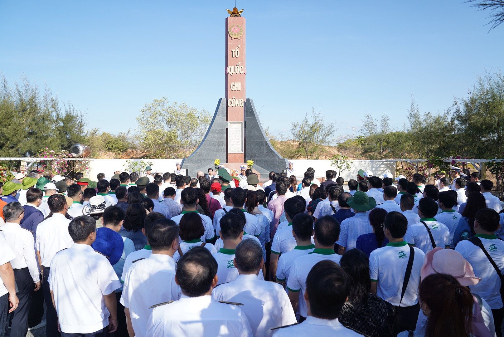 Dâng hương, tưởng niệm các Anh hùng liệt sĩ là hoạt động ý nghĩa của Đoàn công tác trước khi lên đường thăm quân và dân huyện đảo Trường Sa. Ảnh: Nam Sơn