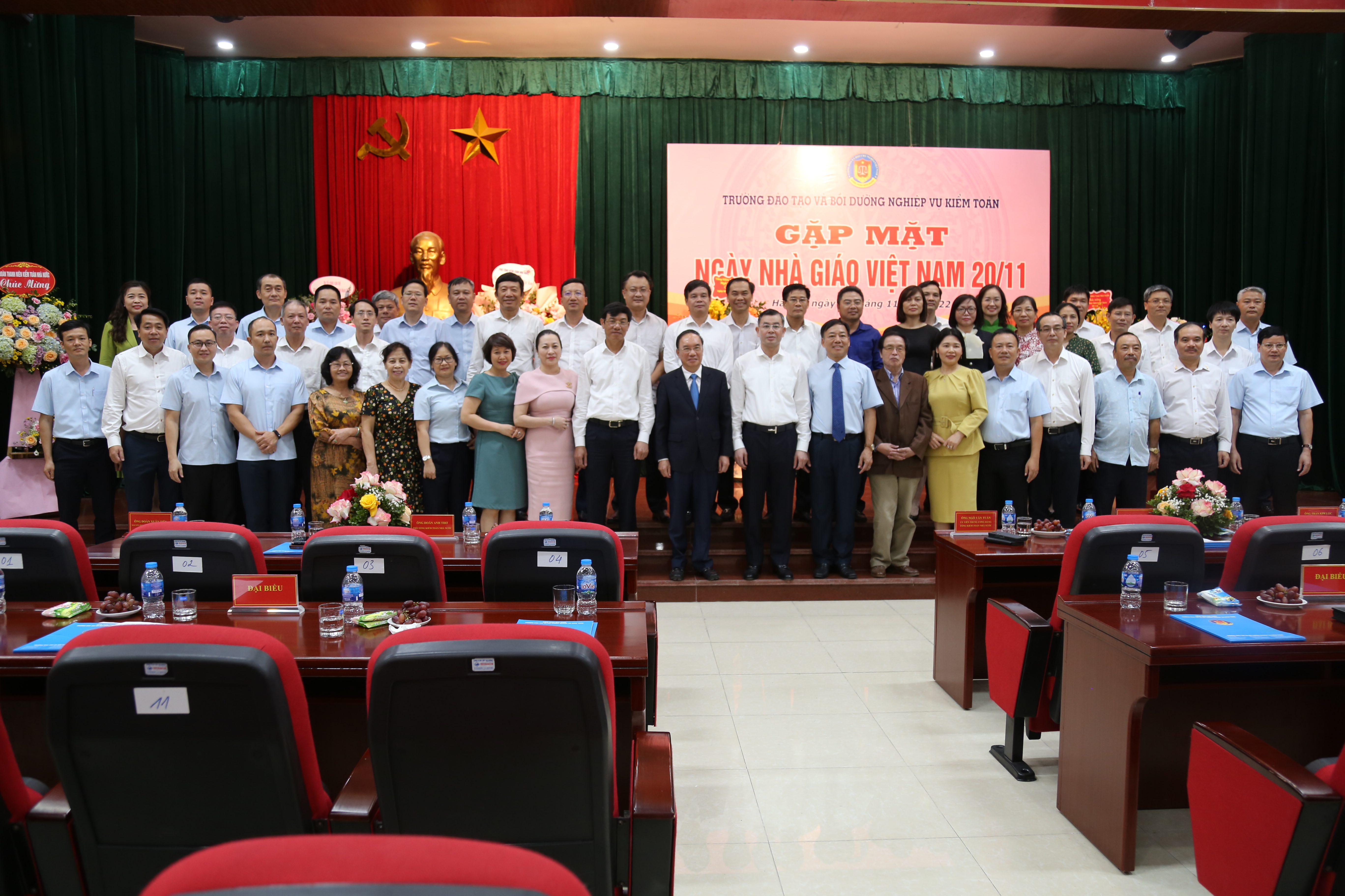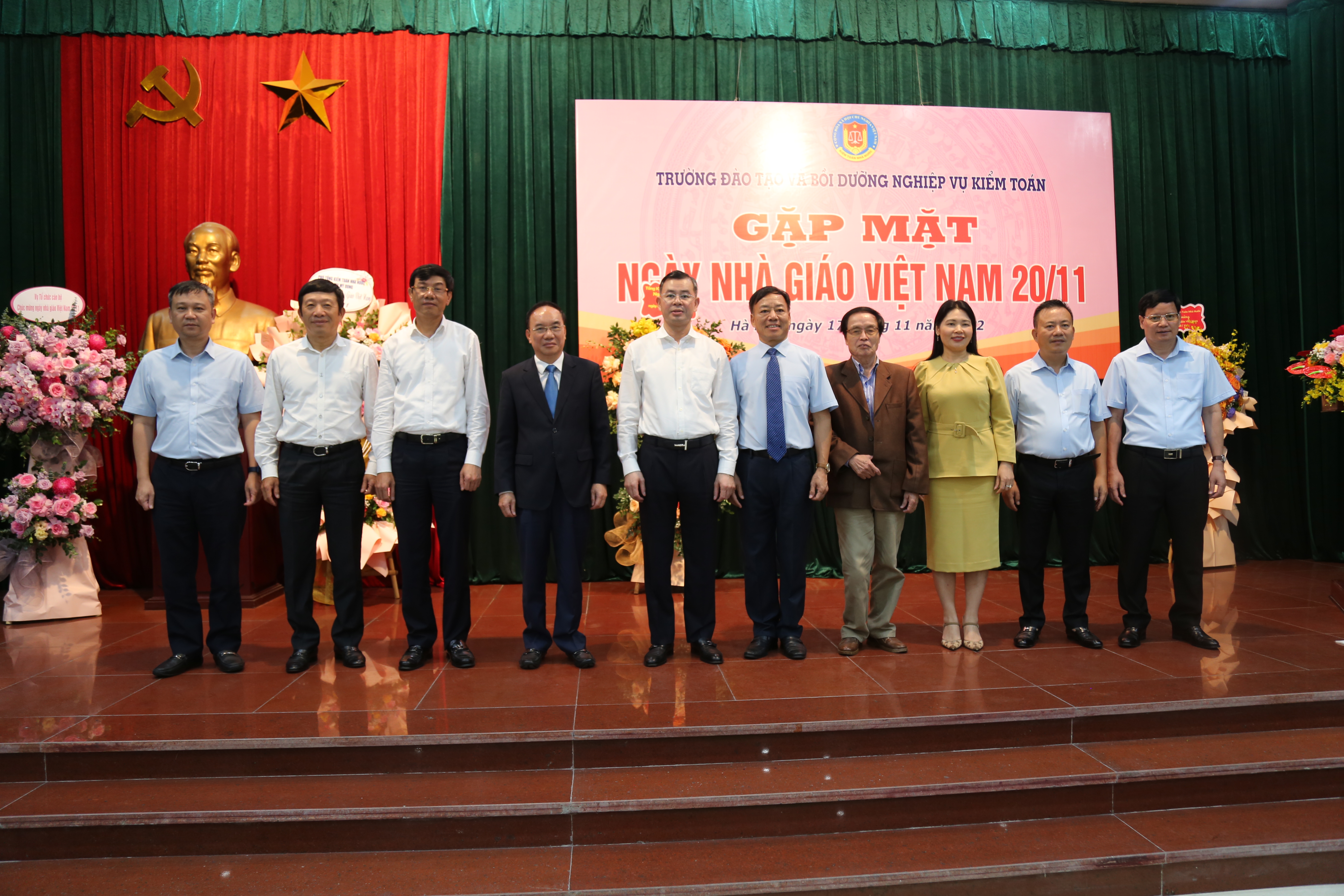 (khoahockiemtoan.vn) - Chiều 17/11, Trường Đào tạo và Bồi dưỡng nghiệp vụ kiểm toán (Trường) đã tổ chức buổi lễ Gặp mặt ngày Nhà giáo Việt Nam 20/11. Tổng Kiểm toán nhà nước Ngô Văn Tuấn tham dự và gửi lời tri ân đến toàn thể các thầy giáo, cô giáo, cán bộ quản lý và người lao động của Trường. Cùng tham dự buổi lễ có các Phó Tổng Kiểm toán nhà nước Doãn Anh Thơ, Hà Thị Mỹ Dung, nguyên Phó Tổng Kiểm toán nhà nước Đoàn Xuân Tiên; đại diện lãnh đạo các đơn vị trực thuộc Kiểm toán nhà nước; các thế hệ lãnh đạo, cựu giáo chức, cùng toàn thể các thầy giáo, cô giáo, cán bộ quản lý và người lao động của Trường.