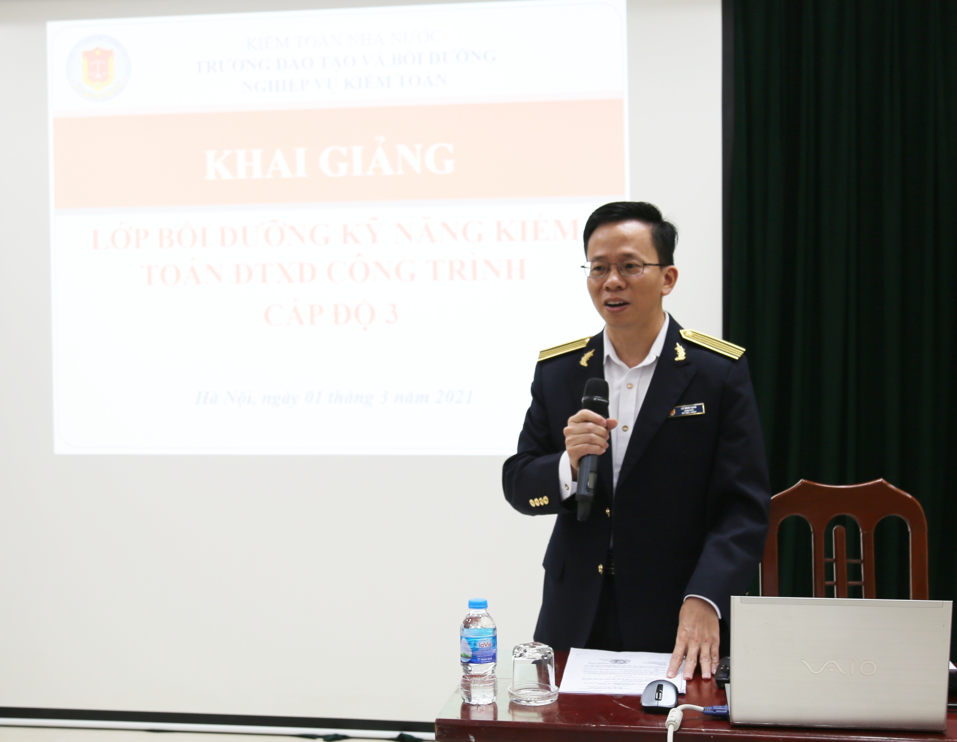 Phát biểu khai giảng Lớp học, ông Lê Minh Nam - Giám đốc Trường cho biết: Lớp học được tổ chức nhằm bồi dưỡng kiến thức, kỹ năng, nghiệp vụ kiểm toán cho các công chức được phân công kiểm toán trong lĩnh vực dự án đầu tư xây dựng công trình có nhiều năm năm kinh nghiệm trong Ngành, qua đó nhằm nâng cao chất lượng nguồn nhân lực kiểm toán dự án đầu tư xây dựng công trình của KTNN trong tình hình mới.