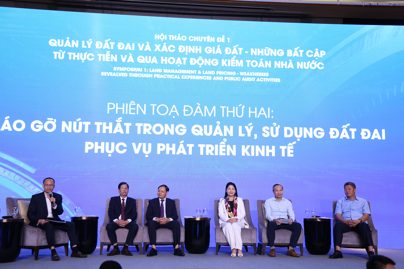 Một là, thực trạng công tác quản lý, sử dụng đất đai và định giá đất hiện nay từ kết quả kiểm toán và thực tiễn tại các địa phương: những khó khăn, vướng mắc và nguyên nhân chủ yếu cản trở việc huy động và sử dụng có hiệu quả nguồn lực đất đai cho phát triển kinh tế.