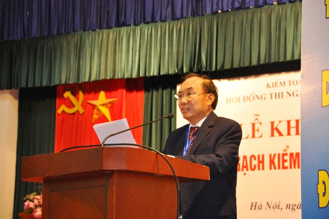 Phát biểu khai mạc kỳ thi, GS.TS Đoàn Xuân Tiên - Phó Tổng Kiểm toán nhà nước, Chủ tịch Hội đồng thi cho biết, kỳ thi được tổ chức nhằm đánh giá và ghi nhận năng lực, trình độ của các thí sinh một cách toàn diện và có hệ thống. Công chức có kết quả đạt yêu cầu sau kỳ thi ngạch Kiểm toán viên sẽ được Tổng Kiểm toán nhà nước bổ nhiệm giữ ngạch Kiểm toán viên và chính thức, được tham gia vào hoạt động kiểm toán của Ngành. "Các thí sinh dự thi ngạch Kiểm toán viên nhà nước hôm nay sẽ là những người đóng vai trò quyết định đến vị thế và uy tín của ngành KTNN, thông qua những đóng góp cho việc nâng cao chất lượng, tác động và hiệu quả của hoạt động kiểm toán. Chính vì vậy, tôi rất mong các thí sinh nhận thức một cách sâu sắc niềm vinh dự cũng như các quyền hạn, trách nhiệm của người Kiểm toán viên nhà nước, để cụ thể hóa nhận thức đó trong việc thực hiện các nhiệm vụ được cấp trên giao phó" - Phó Tổng Kiểm toán nhà nước nói.