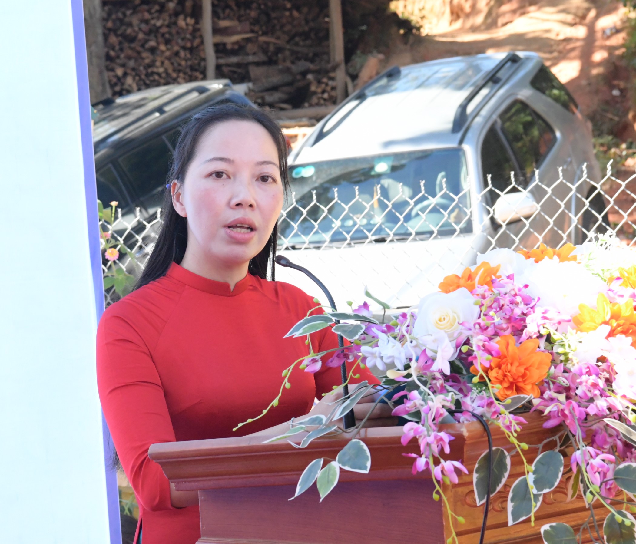 Cô giáo Ngô Thị Bình Yên, Hiệu trưởng Trường Mầm non Púng Luông phát biểu đáp từ
