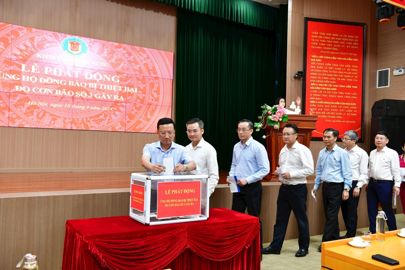 Tại buổi lễ, các đồng chí lãnh đạo KTNN cùng toàn thể công chức, viên chức, người lao động KTNN đã trực tiếp quyên góp, ủng hộ nhân dân vùng bị bão lũ, thiên tai.