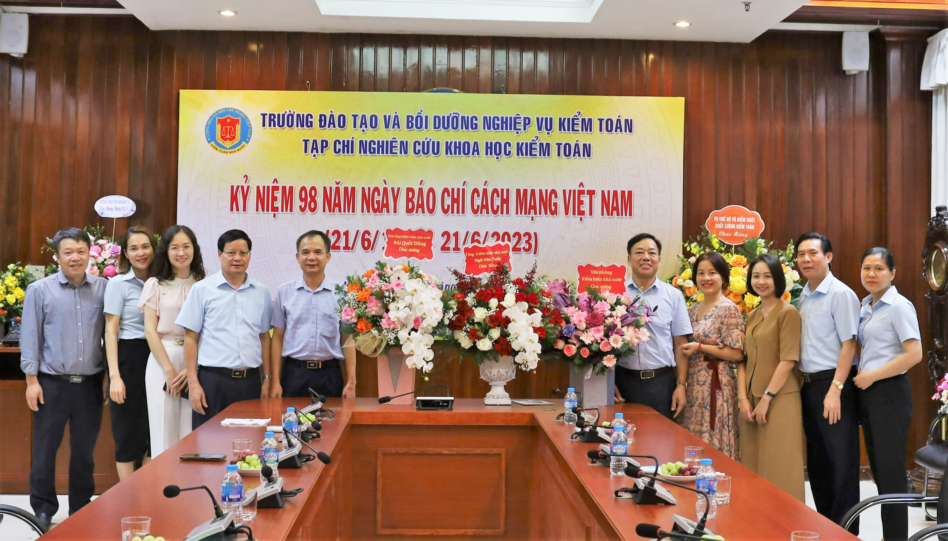 (khoahockiemtoan.vn) - Nhân dịp kỷ niệm 98 năm Ngày Báo chí cách mạng Việt Nam (21/6/1925 -21/6/2023), Tạp chí Nghiên cứu Khoa học kiểm toán đã vinh dự nhận được lẵng hoa, lời chúc mừng của đồng chí Ngô Văn Tuấn - Ủy viên BCH trung ương Đảng, Bí thư Ban cán sự, Tổng Kiểm toán nhà nước; đồng chí Bùi Quốc Dũng - Phó Tổng Kiểm toán nhà nước, cũng như vinh dự được đón tiếp đại diện Đảng ủy Kiểm toán nhà nước; đại diện lãnh đạo các đơn vị, cộng tác viên và đối tác trong và ngoài Ngành. Đây thực sự là nguồn cổ vũ, động viên to lớn để Tạp chí tiếp tục nỗ lực đổi mới, sáng tạo nâng cao hơn nữa chất lượng nội dung tin, bài nhằm phục vụ tốt hơn nhiệm vụ chính trị được lãnh đạo Kiểm toán nhà nước giao phó, giúp Tạp chí ngày càng khẳng định được vị thế là cơ quan thông tin lý luận, khoa học của Kiểm toán nhà nước.