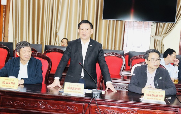 Tại buổi làm việc, Tổng Kiểm toán nhà nước Hồ Đức Phớc đã giới thiệu với Lãnh đạo tỉnh Hà Giang về sự hình thành và phát triển Kiểm toán nhà nước trong 25 năm qua. Kiểm toán nhà nước có chức năng đánh giá, xác nhận, kết luận và kiến nghị đối với việc quản lý, sử dụng tài chính công, tài sản công. “Ngoài việc thực hiện nhiệm vụ chuyên môn, Kiểm toán nhà nước còn thường xuyên tích cực thực hiện công tác an sinh xã hội ở các tỉnh, thành trong cả nước. Nhân chuyến công tác này, Kiểm toán nhà nước tặng thiết bị tin học cho một số trường học còn khó khăn trên địa bàn tỉnh Hà Giang; tặng Quỹ khuyến học tỉnh Hà Giang 100 triệu đồng, nhằm hỗ trợ một phần nhỏ đến việc học tập của người nghèo, người khuyết tật, gia đình chính sách, dân tộc ít người, những người có năng khiếu và học giỏi... trong tỉnh Hà Giang” - Tổng Kiểm toán nhà nước nói. Tổng Kiểm toán nhà nước cũng đề nghị trong thời gian tới tỉnh Hà Giang cần tiếp tục thực hiện có hiệu quả các chính sách an sinh xã hội, thúc đẩy kinh tế xã hội phát triển, chăm lo cho sự nghiệp giáo dục.