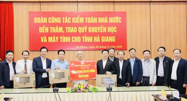 (khoahockiemtoan.vn) - Ngày 28/11/2020, Đoàn công tác của Kiểm toán nhà nước do ông Hồ Đức Phớc - Ủy viên Ban Chấp hành Trung ương Đảng, Tổng Kiểm toán nhà nước dẫn đầu đã đến thăm và tặng quà cho Quỹ khuyến học tỉnh Hà Giang. Tiếp và làm việc với Đoàn, về phía tỉnh Hà Giang có đồng chí Nguyễn Văn Sơn – Chủ tịch Ủy ban nhân dân tỉnh cùng đại điện Mặt trận Tổ quốc, Quỹ Khuyến học tỉnh cùng với đại diện một số sở, ngành của tỉnh.