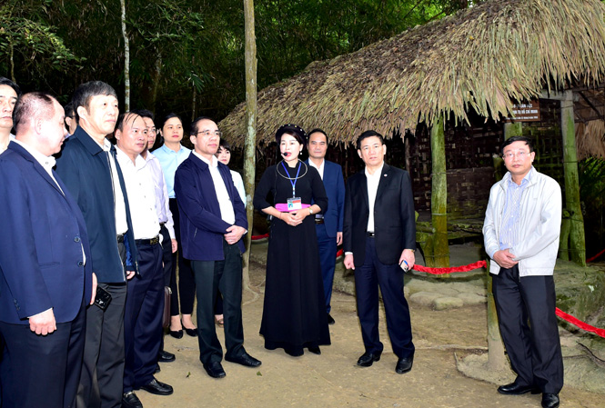 Cùng ngày, Đoàn công tác đã đến dâng hương tại lán Nà Nưa, đình Tân Trào, Khu tưởng niệm các vị tiền bối cách mạng tại xã Tân Trào (Sơn Dương).