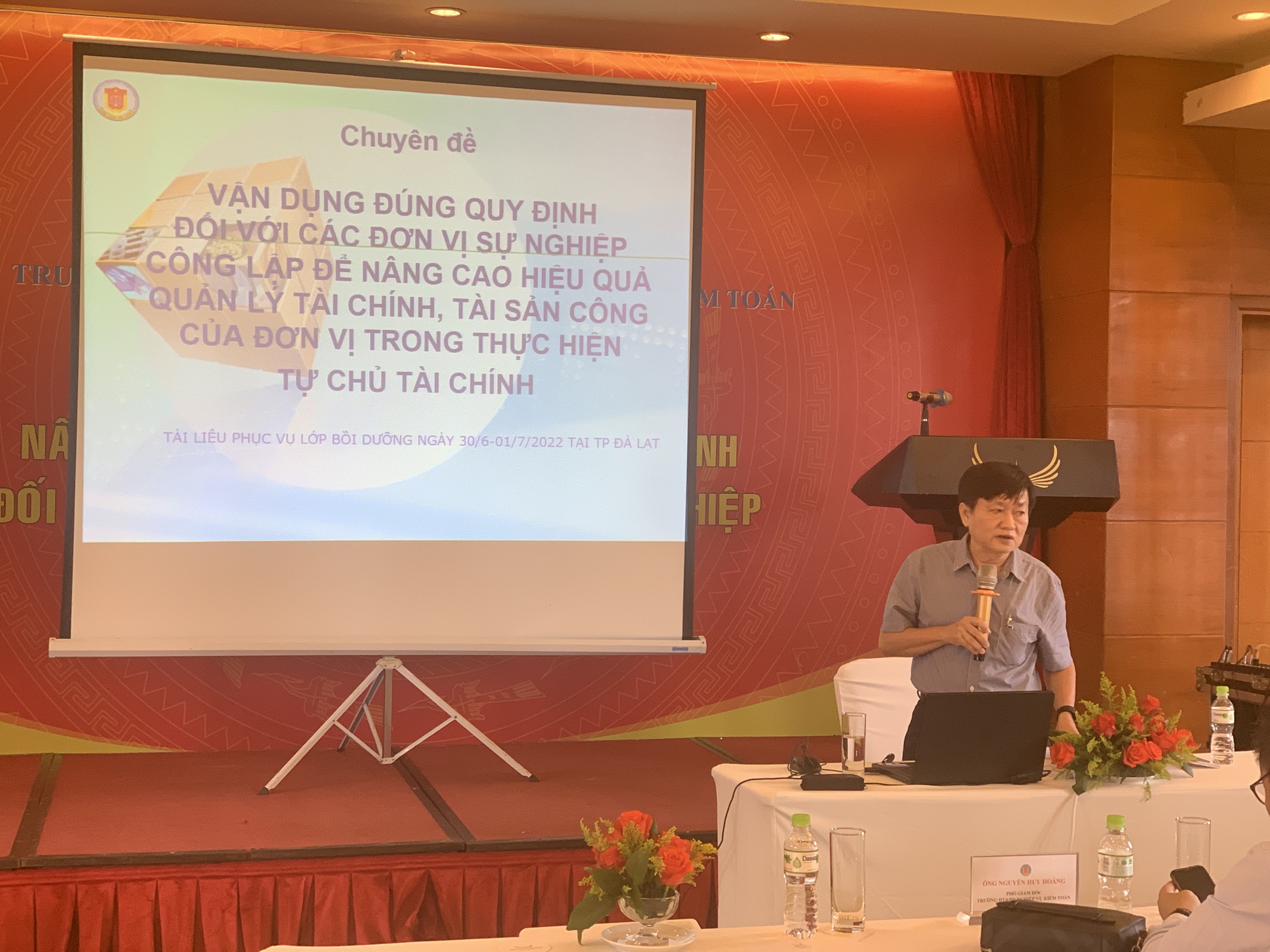 (khoahockiemtoan.vn) - Trong 2 ngày 30/6 và 01/7/2022, tại thành phố Đà lạt, tỉnh Lâm Đồng, Trường ĐT&BD nghiệp vụ kiểm toán (Trường) tổ chức khóa đào tạo, bồi dưỡng Nâng cao hiệu quả quản lý tài chính, tài sản công đối với các đơn vị hành chính sự nghiệp và Ban Quản lý dự án (QLDA)”. Tới dự lễ khai giảng có đồng chí Phó Giám đốc Trường - Nguyễn Huy Hoàng và các học viên.