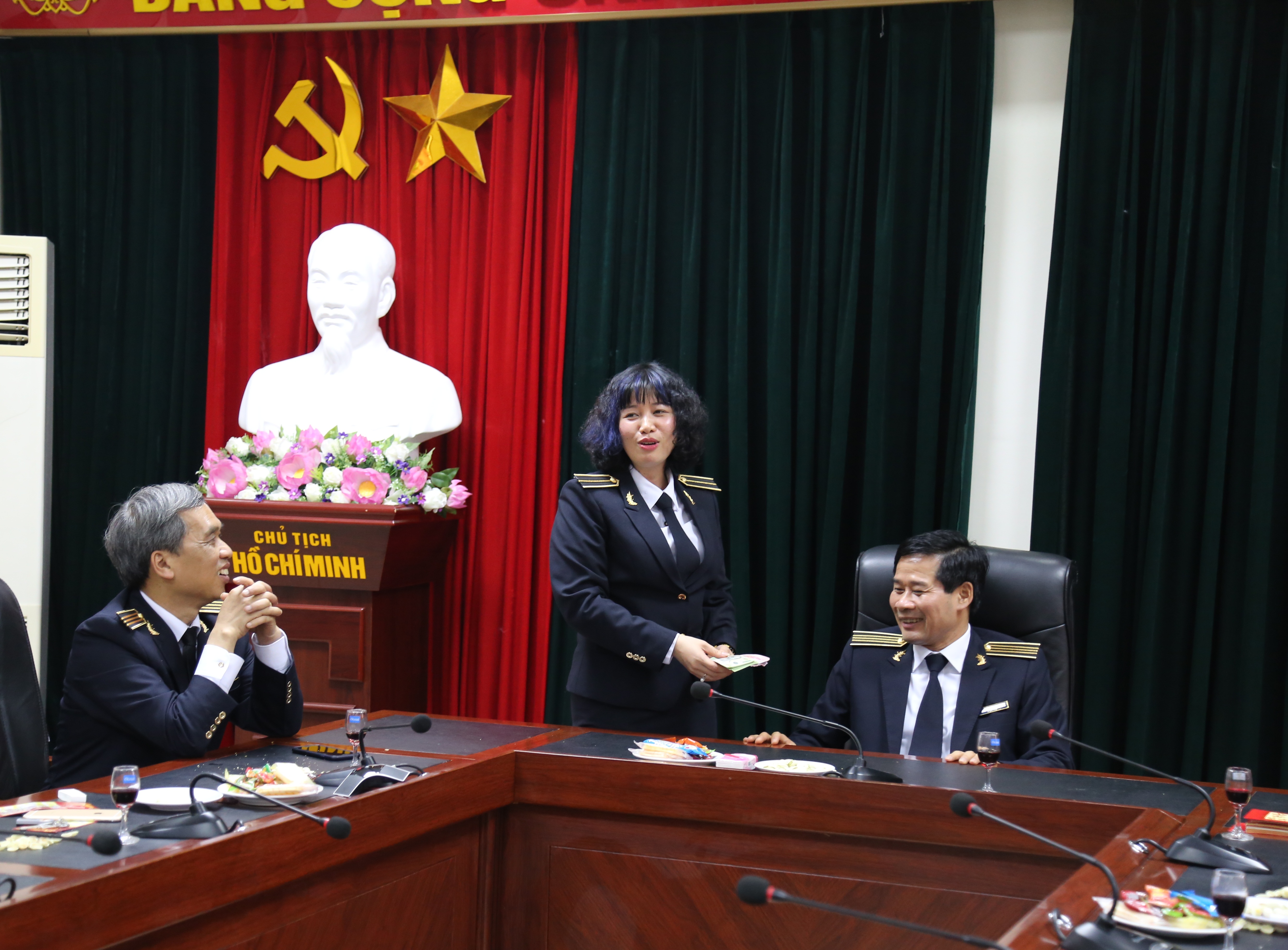 Tại buổi gặp mặt, theo phong tục truyền thống của dân tộc,  TS Lê Đình Thăng - Giám đốc Trường, các đồng chí Phó Giám đốc Trường đã mừng tuổi cho cán bộ, viên chức của Trường nhân dịp đầu Xuân năm mới và mong muốn mọi đều gặp may mắn cho sự khởi đầu của một năm mới tốt lành.