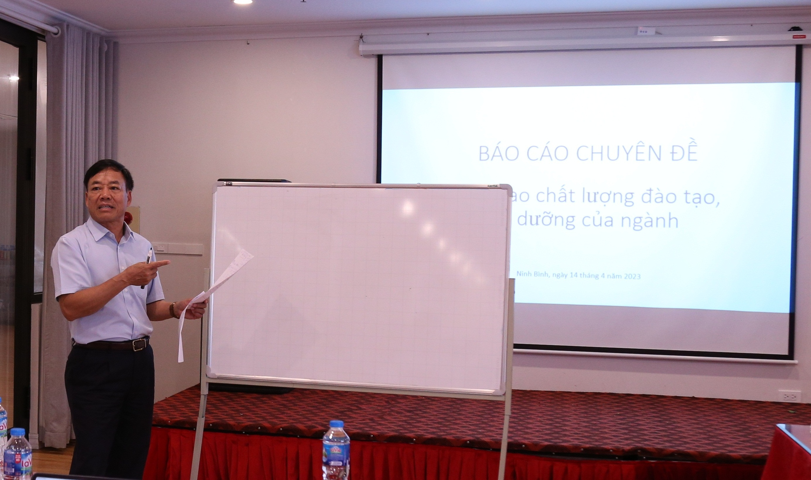 Phó Giám đốc Trường - Hà Minh Tuấn  báo cáo chuyên đề thứ nhất tại buổi tập huấn