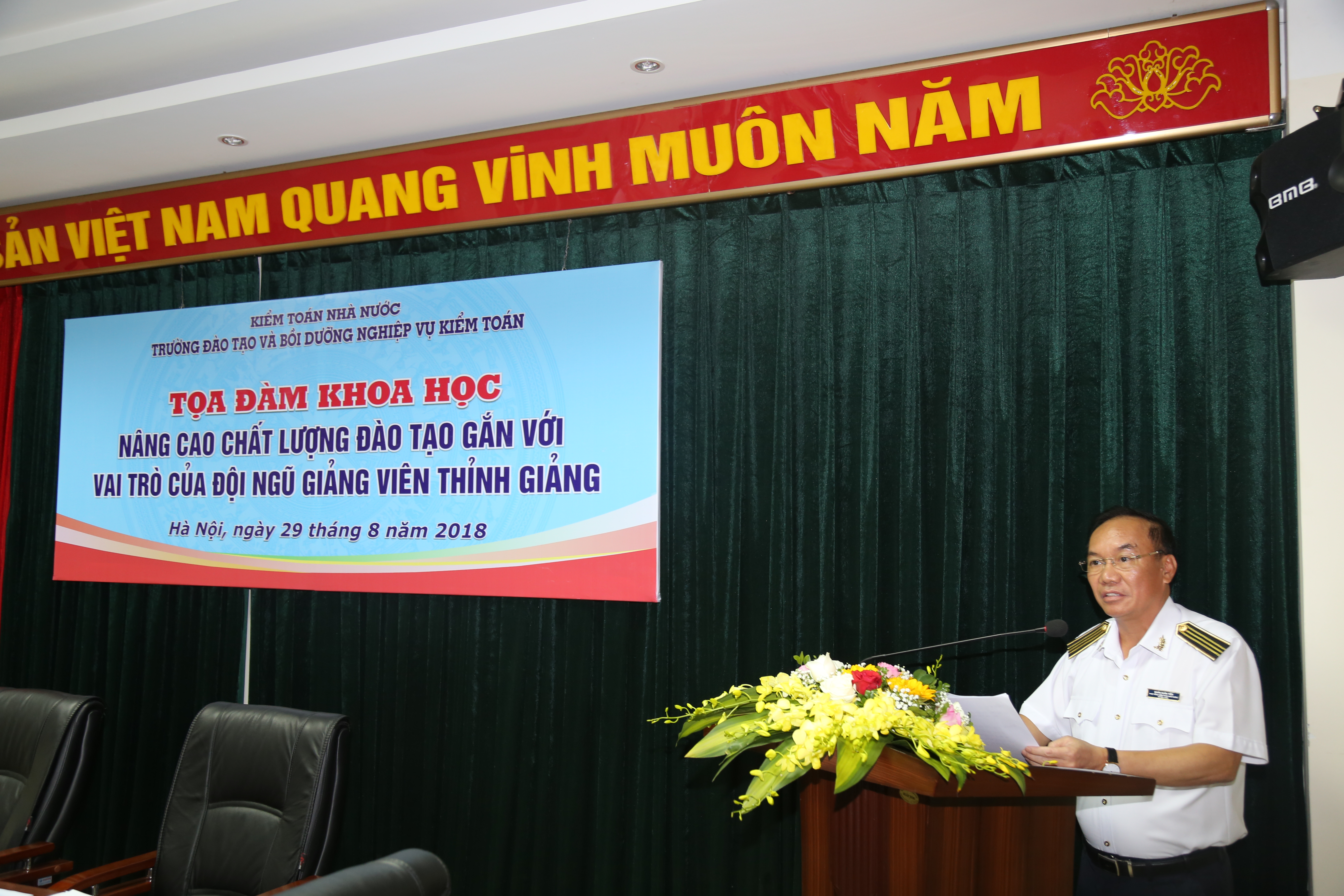 Phát biểu bế mạc Hội nghị, GS. TS Đoàn Xuân Tiên - Phó Tổng KTNN  kết luận: Buổi tọa đàm đã có 3 bài tham luận, 7 ý kiến tham gia phát biểu và đặc biệt là ý kiến chỉ đạo định hướng của Tổng KTNN, các ý kiến cơ bản thống nhất cao đánh giá vai trò của giảng viên, vai trò của thủ trưởng các đơn vị, cơ chế tài chính…. trong việc nâng cao chất lượng công tác đào tạo, bồi dưỡng của Ngành. Để Trường hoạt động hiệu quả hơn trong thời gian tới, GS. TS Đoàn Xuân Tiên đề nghị: Trường cần cụ thể hóa các chỉ đạo của Tổng KTNN đã định hướng, phối hợp chặt chẽ với các đơn vị, đội ngũ giảng viên thỉnh giảng, xây dựng cơ chế tài chính đối với đội ngũ giảng viên, quy định đối với giảng viên kiêm chức… để hoạt động đào tạo và bồi dưỡng của Ngành ngày càng đi vào chiều sâu, có chất lượng và hiệu quả.