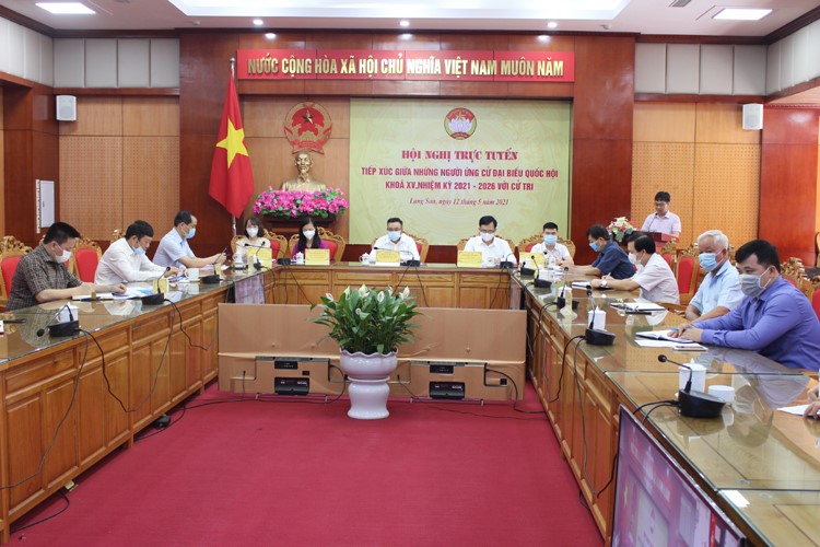 (khoahockiemtoan.vn) - Trước diễn biến phức tạp của dịch COVID-19, ngày 12/5/2021, tại trụ sở UBND tỉnh Lạng Sơn, Ban Thường trực Ủy ban Mặt trận Tổ quốc (MTTQ) Việt Nam tỉnh tổ chức Hội nghị trực tuyến tiếp xúc giữa những người ứng cử đại biểu Quốc hội (ĐBQH) khóa XV, nhiệm kỳ 2021 – 2026, thuộc Đơn vị bầu cử số 2, với cử tri 5 huyện biên giới: Cao Lộc, Văn Lãng, Tràng Định, Lộc Bình, Đình Lập, tỉnh Lạng Sơn để vận động bầu cử. Hội nghị trực tuyến có hơn 3.900 đại biểu tại 99 điểm cầu tham dự.